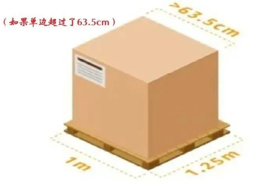 如果外箱任意一邊的尺寸超過了63.5cm,那就要把包裝箱放置在1mx1.25m的托盤上,以方便亞馬遜FBA倉庫工作人員使用機械進行搬運操作。