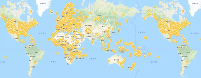上面的每一個星標都是一個國際機場,