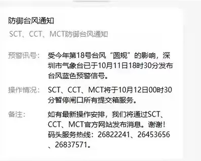 臺(tái)風(fēng)圓規(guī)到來(lái),鹽田 蛇口碼頭于12號(hào)凌晨停止所有交提箱業(yè)務(wù)!