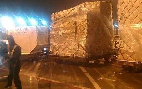 3.需要進(jìn)行國際空運(yùn)的貨物裝好板以后,在飛機(jī)抵達(dá)裝貨區(qū)后,運(yùn)輸車輛會將整板的貨物(集裝箱)拖至飛機(jī)下面,準(zhǔn)備裝機(jī)運(yùn)輸:
