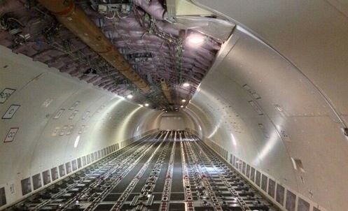 4.裝貨前,我們看看飛機(jī)內(nèi)部結(jié)構(gòu)吧,地板上有專門用來和集裝箱(集裝板)相扣的鎖止結(jié)構(gòu),防止集裝箱(集裝板)滑動: