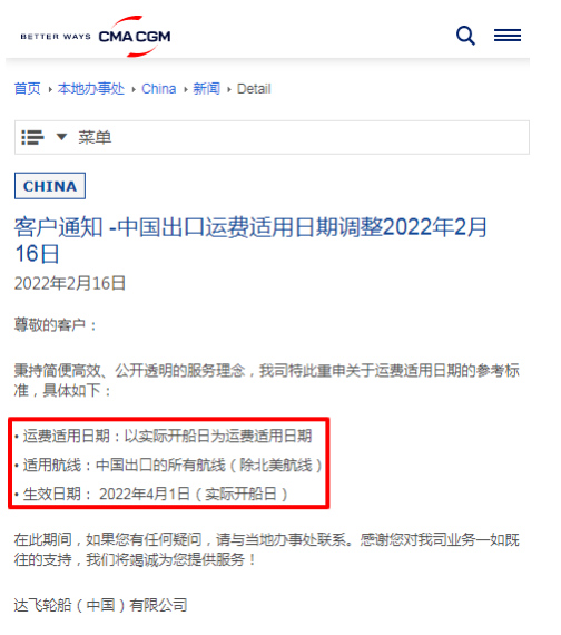 http://www.cma-cgm.com/local/china-agencies/news/68/%E5%AE%A2%E6%88%B7%E9%80%9A%E7%9F%A5-%E4%B8%AD%E5%9B%BD%E5%87%BA%E5%8F%A3%E8%BF%90%E8%B4%B9%E9%80%82%E7%94%A8%E6%97%A5%E6%9C%9F%E8%B0%83%E6%95%B42022%E5%B9%B42%E6%9C%8816%E6%97%A5